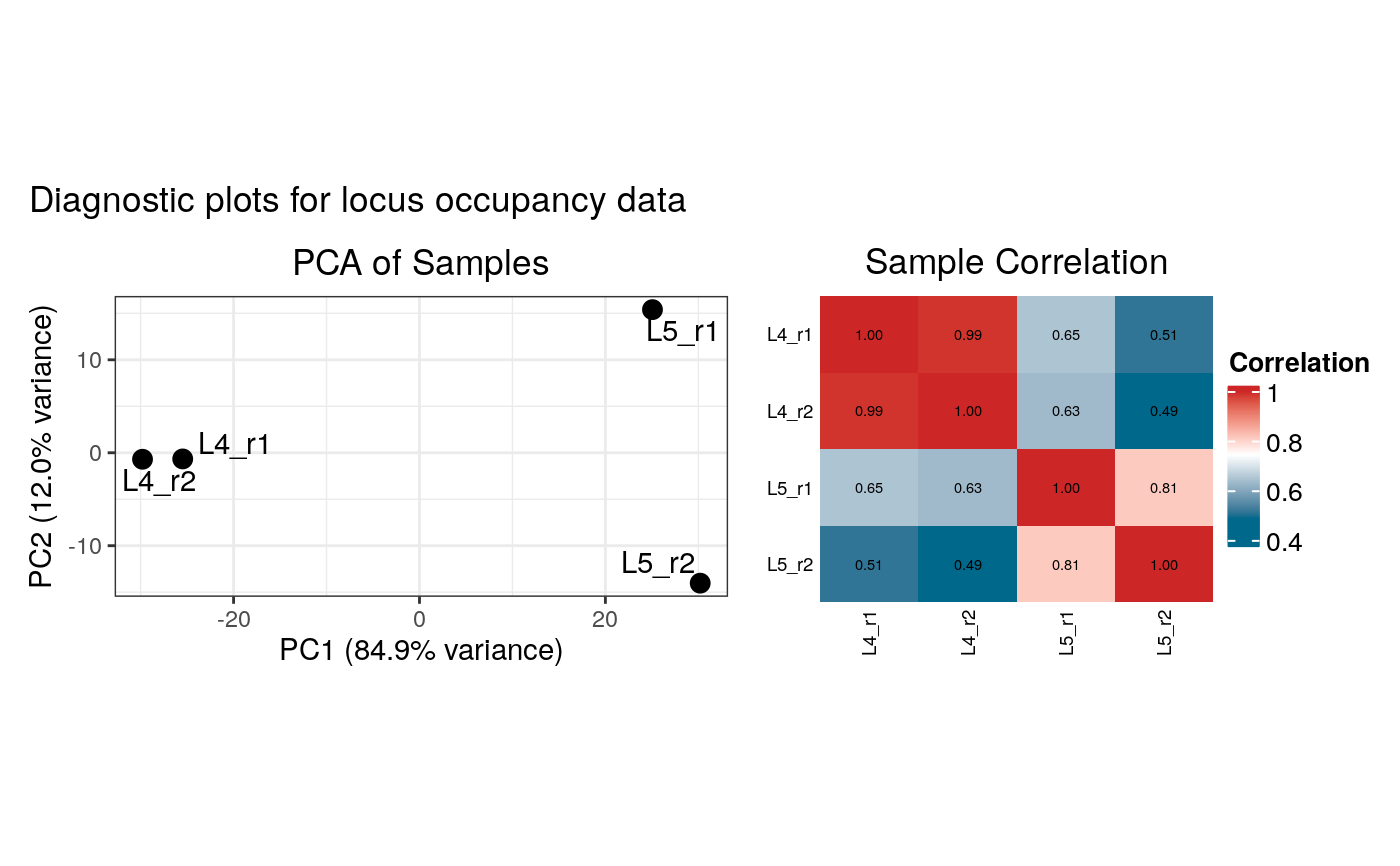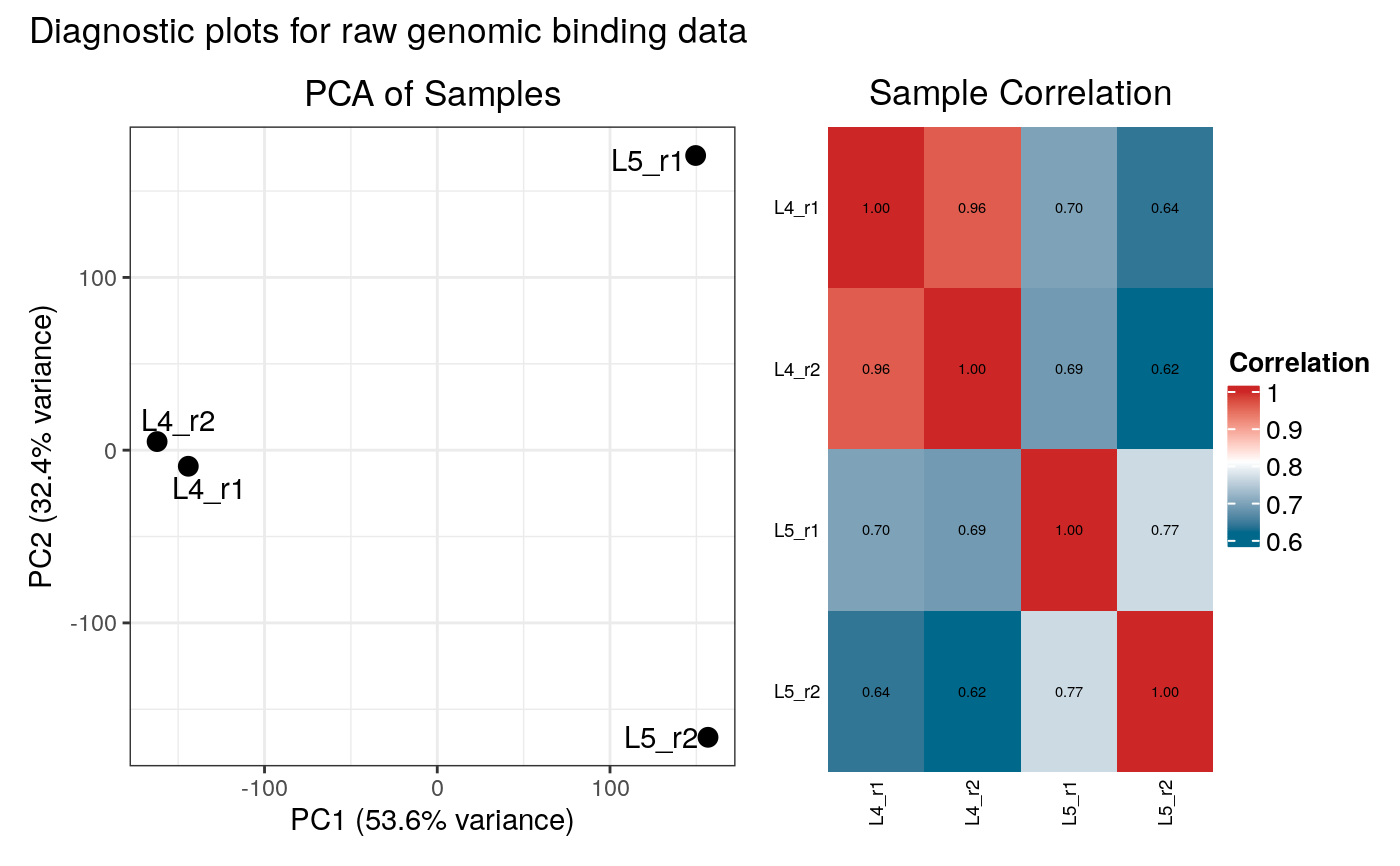This function creates and displays diagnostic plots (PCA and correlation heatmap) for both occupancy and raw binding data. It is called by `load_data_peaks` and `load_data_genes`.